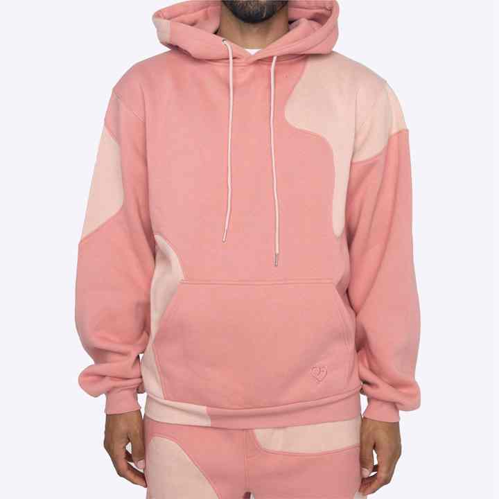 Premium Quality 100% Cotton Hoodies for Men Pink Dual Tone Cotton Fleece Panel Work Design Embroidered Block Hoodies Size 6XL