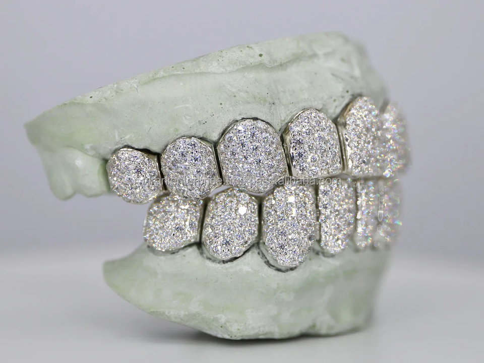 Premium Quality 925 Sterling Silver Vvs Moissanite Studded Teeth Grillz Unisex