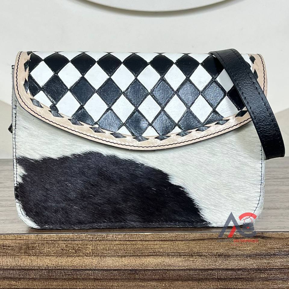 Product name:Hand Tooled Checkered Leather Crossbody Bag