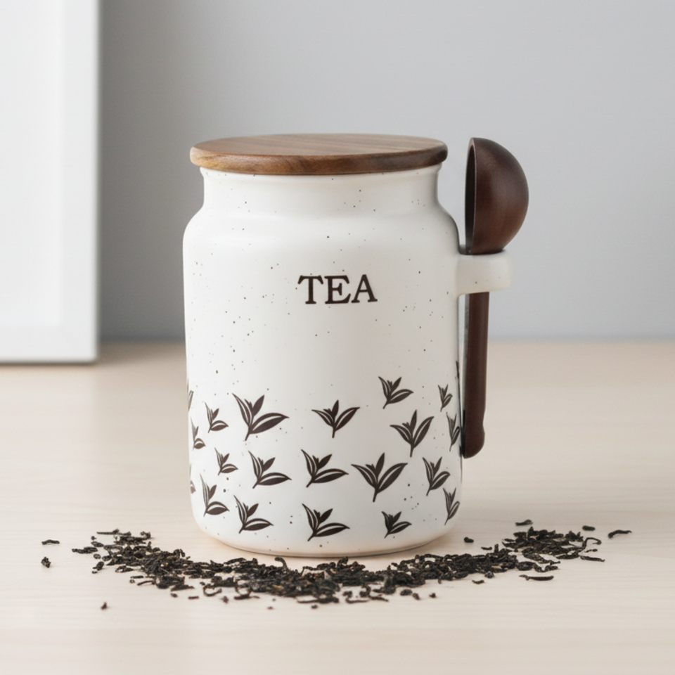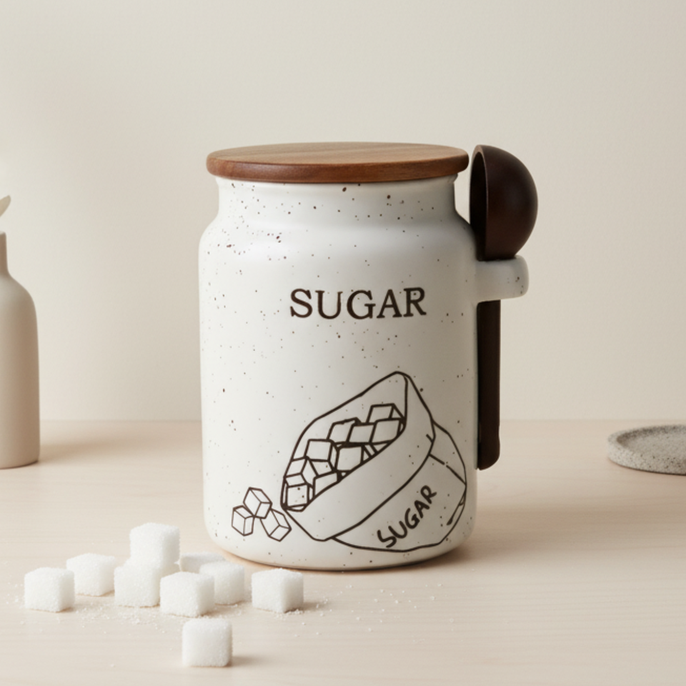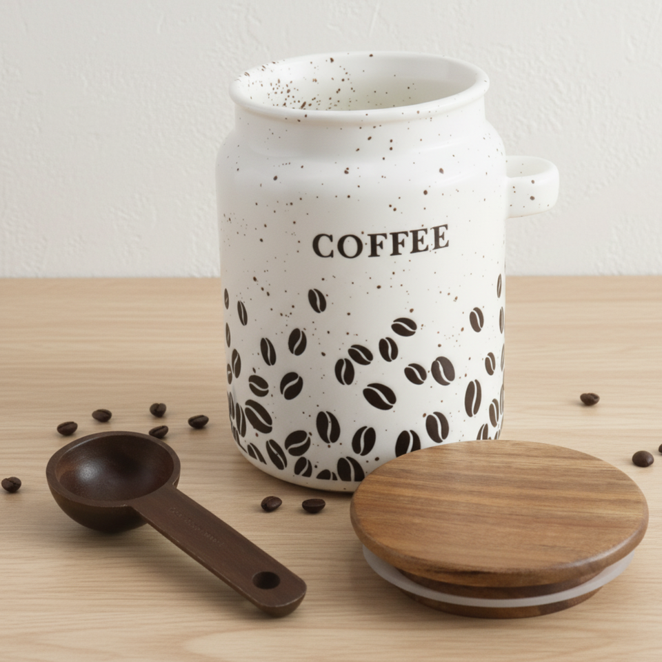 Premium Quality 3460989LA Nordic Design DURABLE PORCELAIN CANISTER WOOD LID &WOOD SPOON