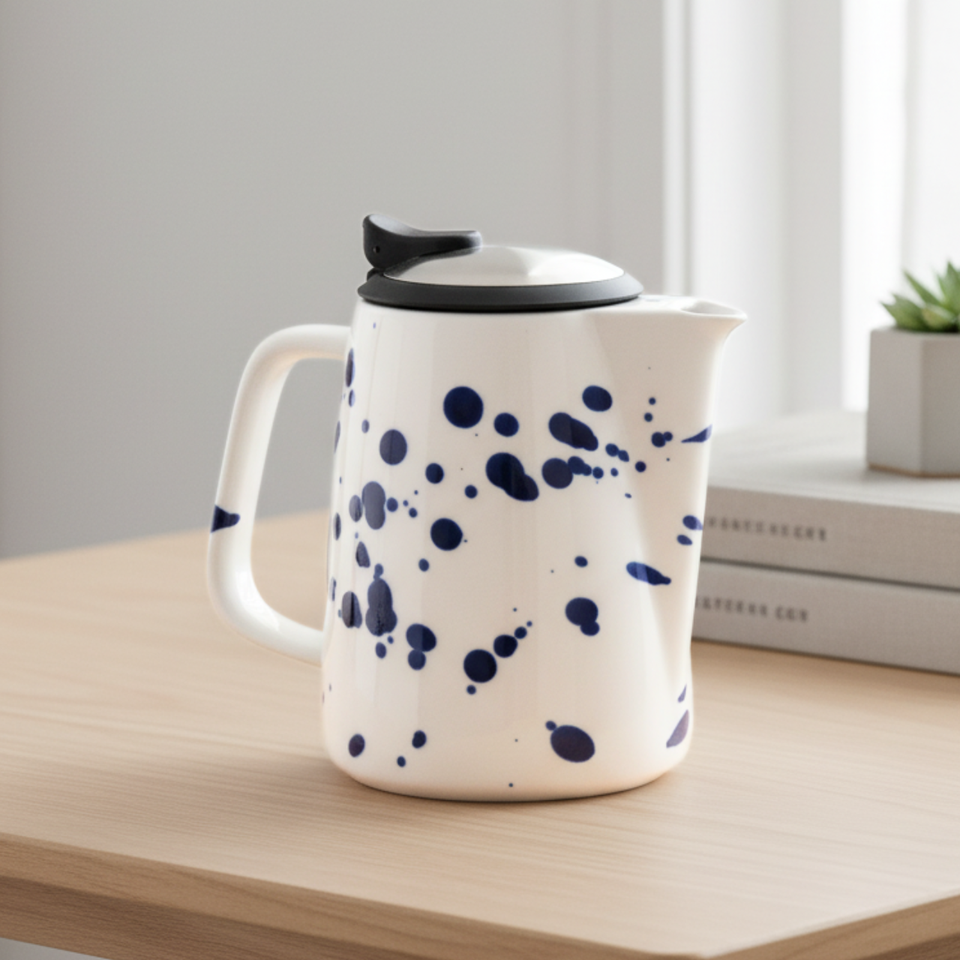 Premium Quality 3460995-0.8 Nordic Design DURABLE PORCELAIN TEAPOT S. S. STRAINER+WIRE HANDLE
