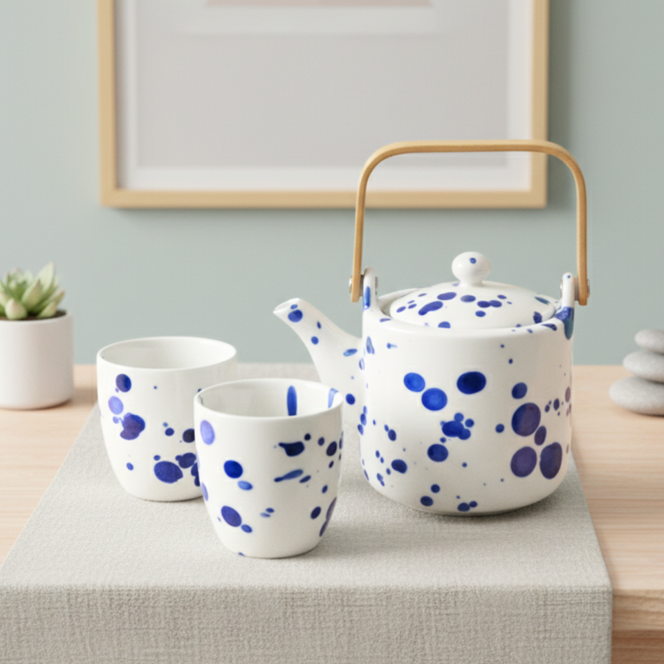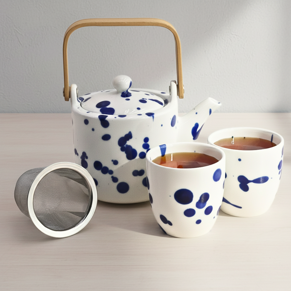 Premium Quality 3460999SETA-0.5 Nordic Design DURABLE PORCELAIN TEAPOT SET 2CUPS & MESH STRAINER 500ml TEAPOT& 150ml TEA CUP
