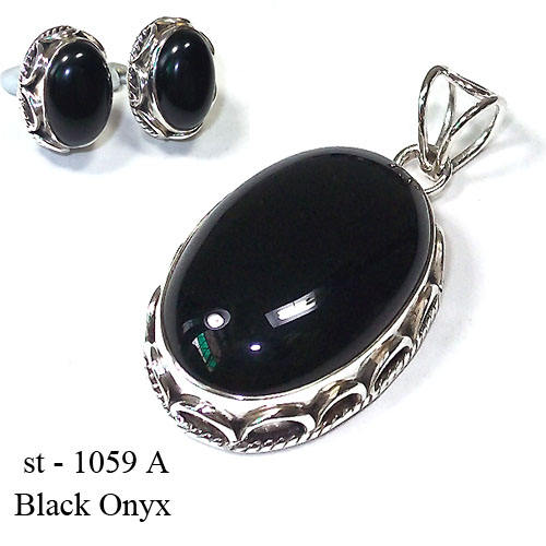 Premium Quality 925 Sterling Silver Jewelry Black ONYX Pendant Set at Low Price