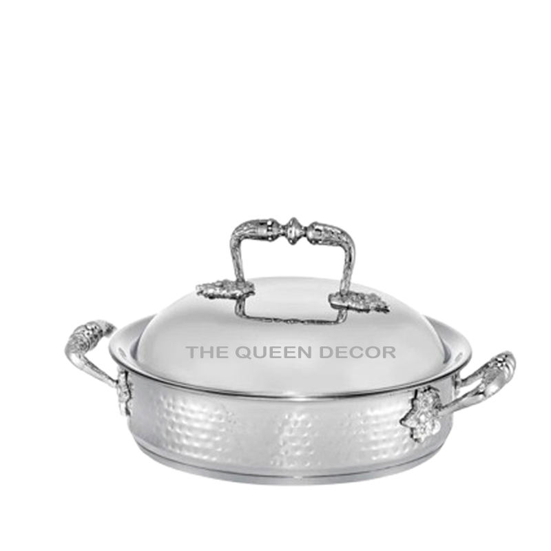 Premium Quality Aluminum Metal Round Shape Silver Shinny Polished Casseroles Latest Look Home Dinnerware