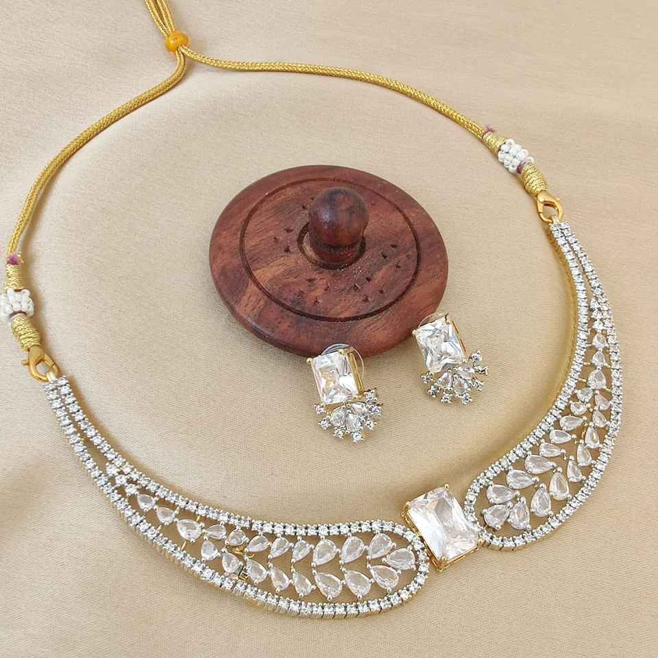 Premium Quality American Diamond Necklace With Beautiful Earrings Minimal Wear Necklace Trending Elegant Necklace Set Party Wear