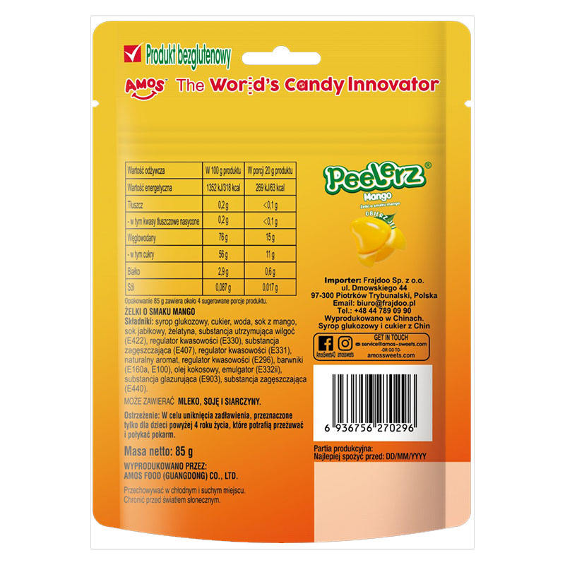 Premium Quality Amos Peelerz Peach Flavor Gummy Candy 3 Pack 2.19oz Resealable Bag Wholesale Factory Price Quality Chewy Fruit