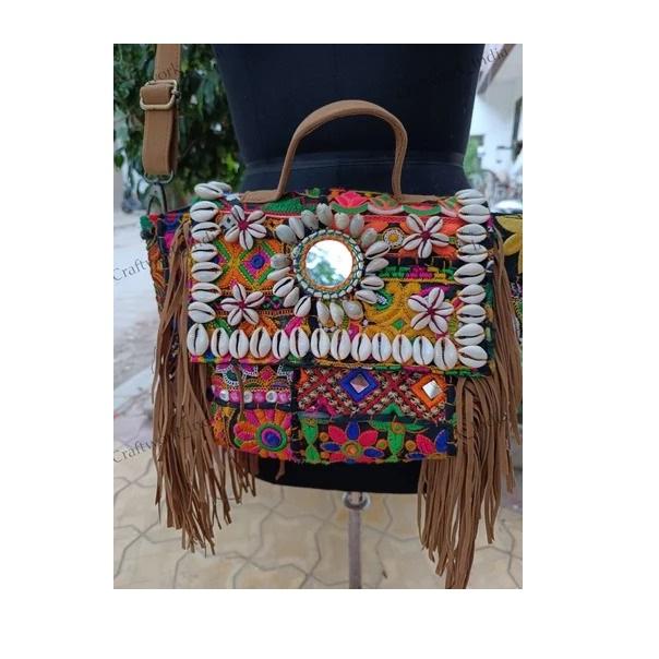 Premium Quality Assorted Banjara Embroidery Patchwork Handmade Fringe Sling Bag for Daily Use Available At Best Price