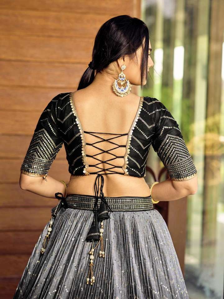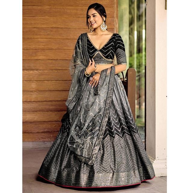 Premium Quality Black Designer Lehenga Choli with Heavy Sequins Embroidery for Wedding or Party Wear Use from Indian Supplier