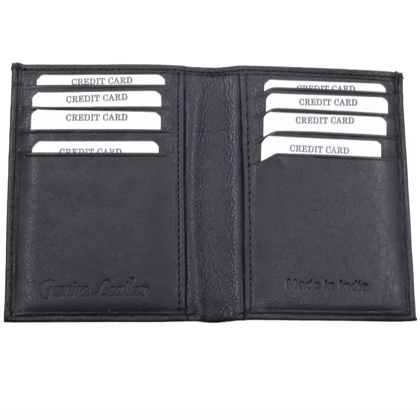 Premium Quality Black Leather Card Holder Classic Slim Minimalist Bi-fold Design Customised Bill Card Slots Card Holder Wallet