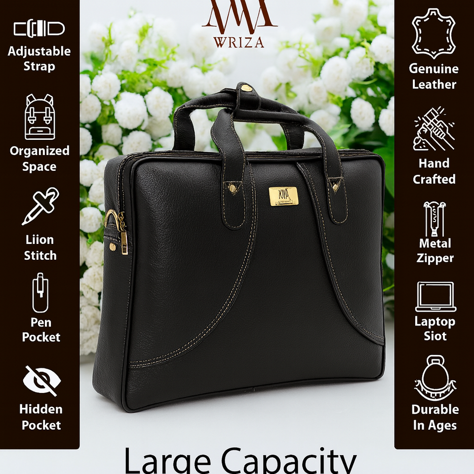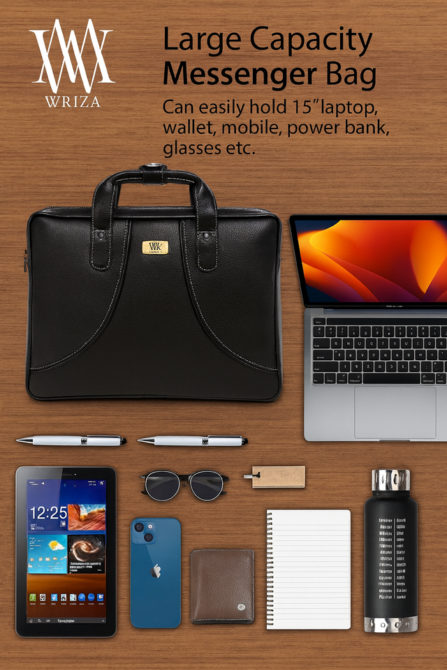 WRIZA High Quality Men's Office Genuine Leather Messenger Bag Large Adjustable Strap Durable RFID Feature Premium Black Fashion