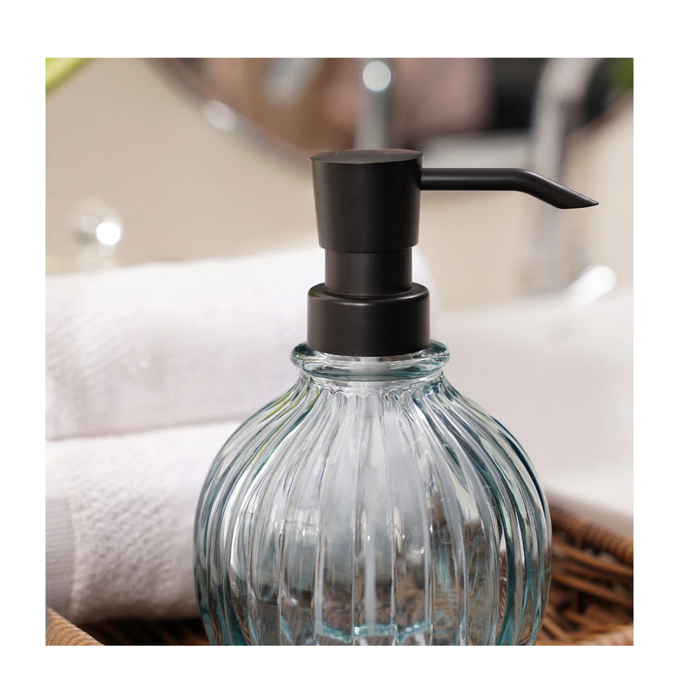 Premium Quality Blue Ribbed Glass Soap Dispenser Luxury Bathroom Accessories Soap Dispenser for Home and Hotel Usage