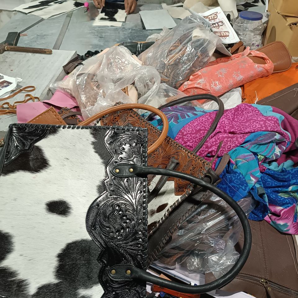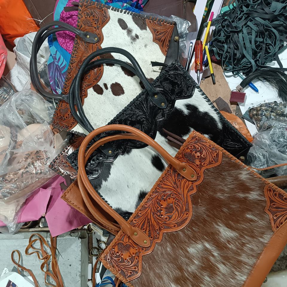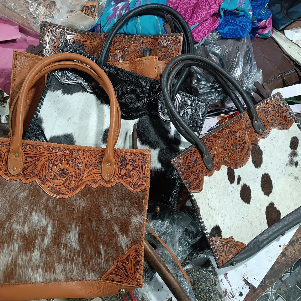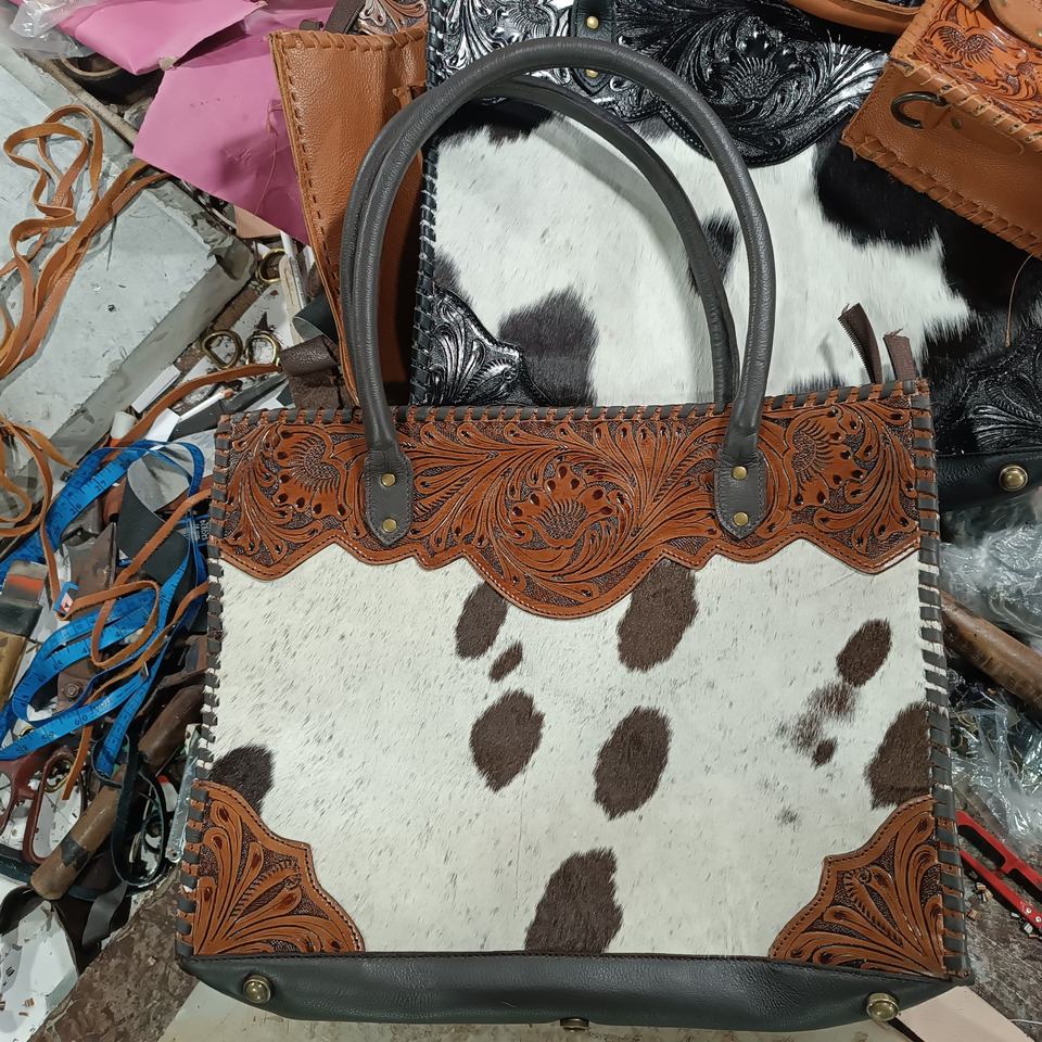 Premium Quality Bohemian Custom Cowhide Leather Shoulder Bag Natural Fur Purse Women Tooled Tote Concealed Carry Bags