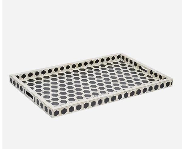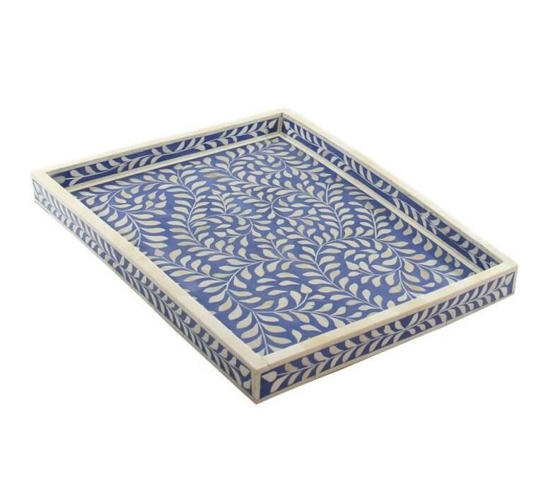 Premium Quality Custom Size Bone Fancy Inlay Modern Customized Shape Serving Tray Home Kitchen Good Color Combination Food
