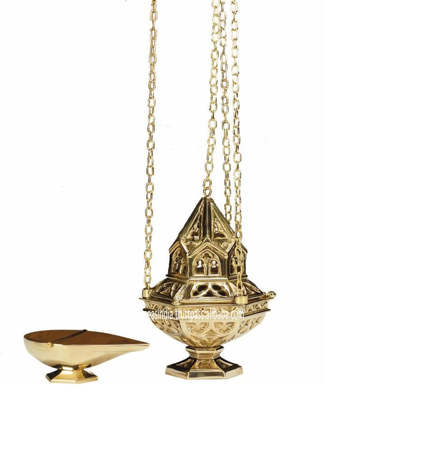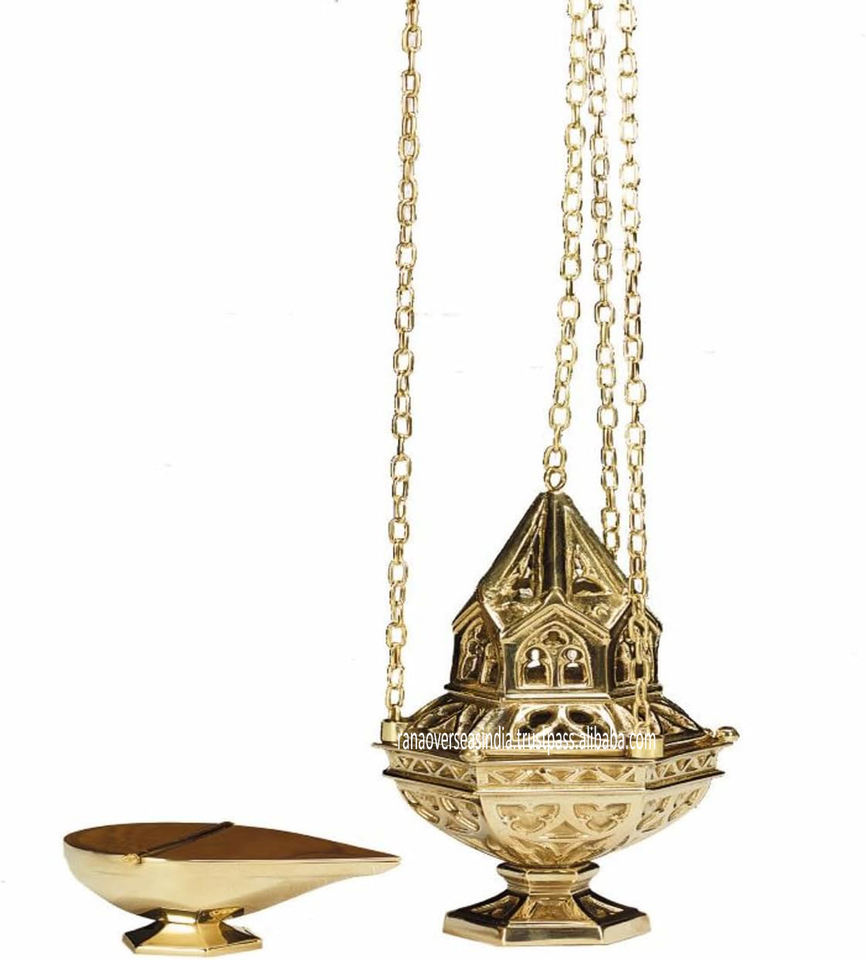 Brass Ornate Hanging Censer with ChainFeature