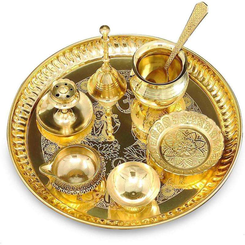 Premium Quality Brass Thali Set with Long Lasting Shine for Daily Home Hotel Serving Temple Food Offering and Gift Purpose Use