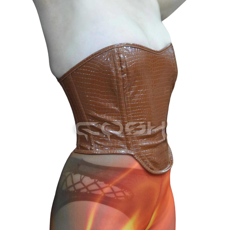 Premium Quality Breathable Steelboned Overbust Brown Crocodile PVC Corset Adjustable Side Zipper Back Laced High Compression