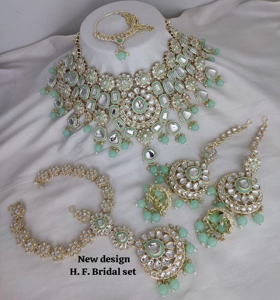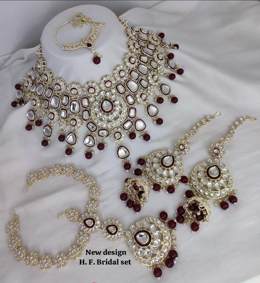 Premium Quality Bridal Set - Choker Necklace, Matha Patti, Earrings, Nath ( Nose Ring ) Perfect For Wedding, Festive Occasions