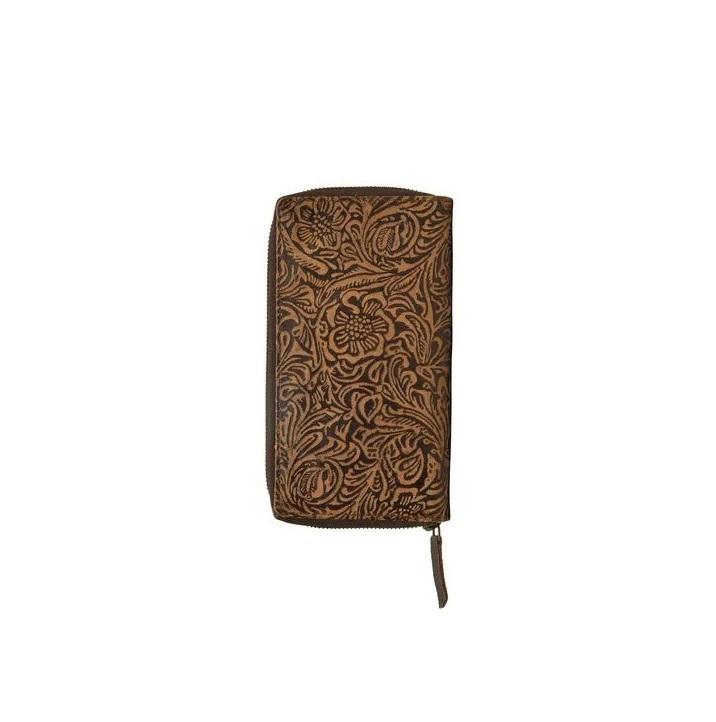 Premium Quality Brown Genuine Leather Women Clutch Bag Hand Tooled Sun Flower Floral Carved Zipper Vintage Indian Manufacturers