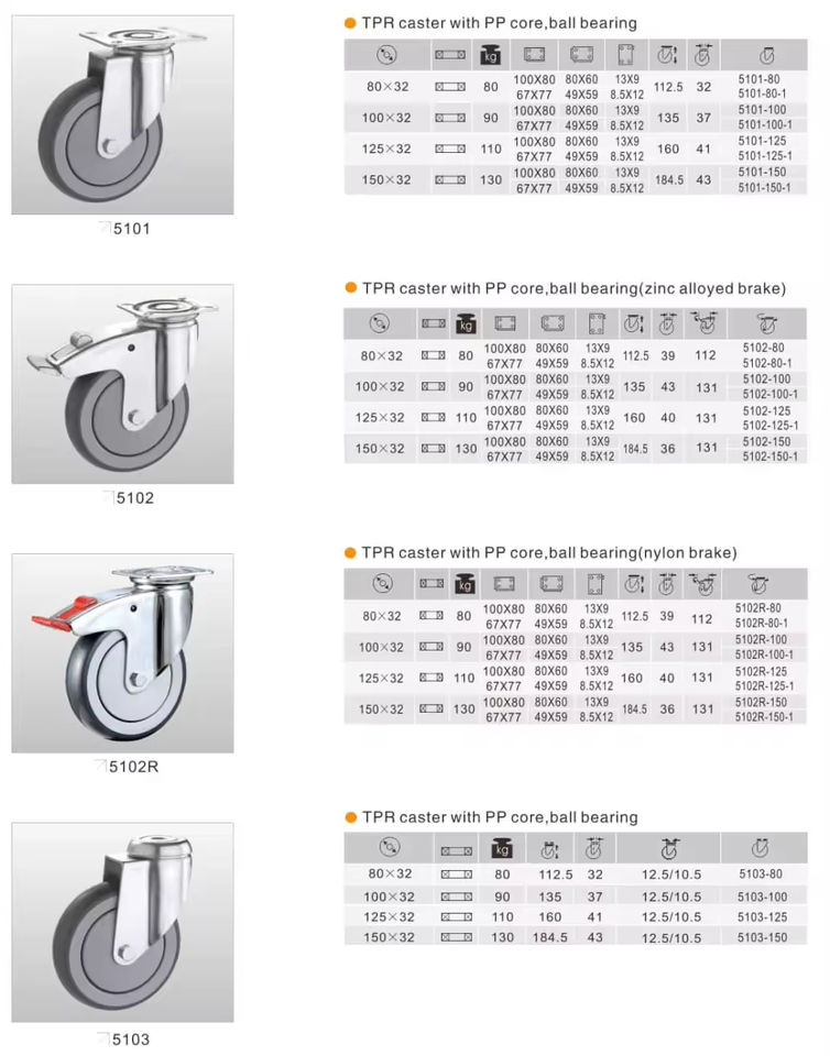 Premium Quality Caster Wheels with Ball Bearing 80kg-130kg Load Capacity 80-150mm Diameter for Industrial Use-Wholesale Export