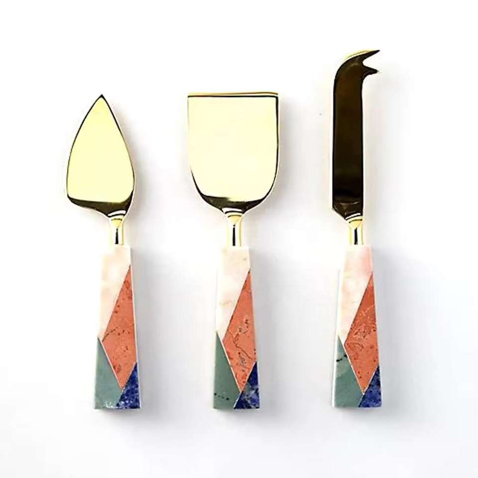 Premium Quality Cheese Set Stainless Steel Marble Resin Handle with Wedding Cheese Tool Tableware Dinnerware Cheese Cutting Tool