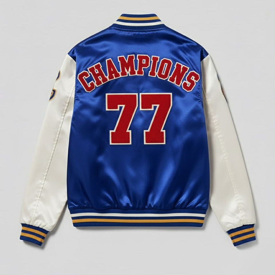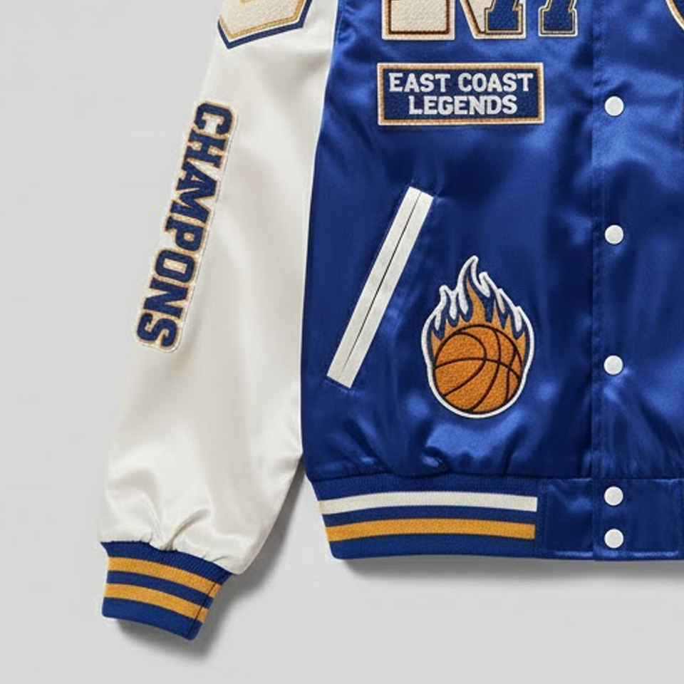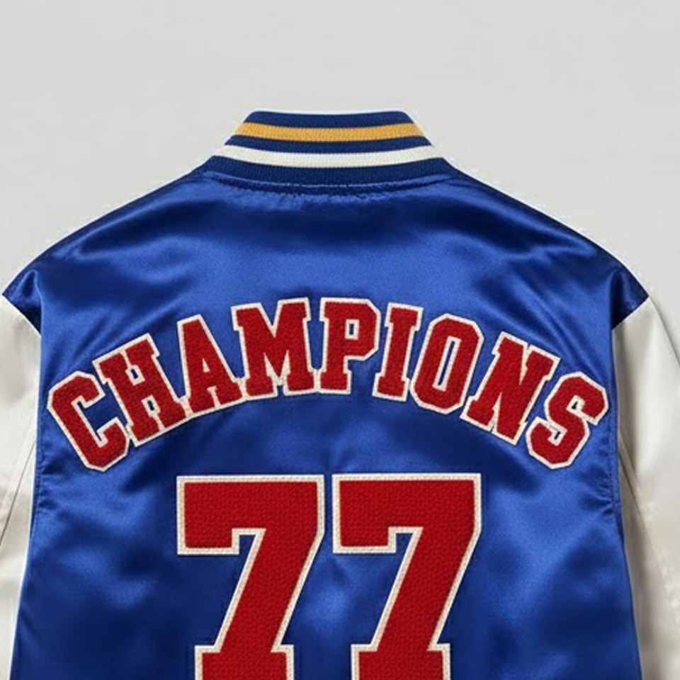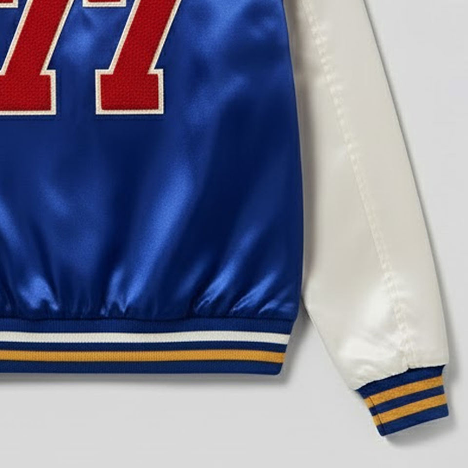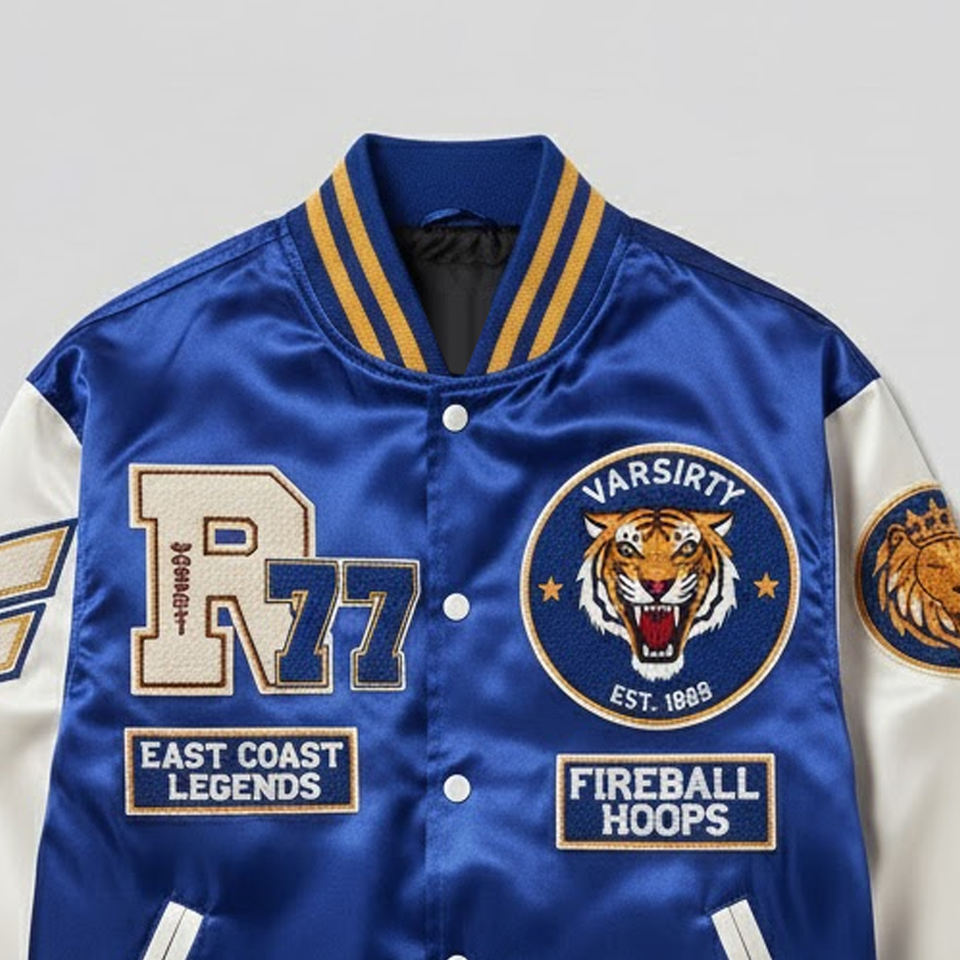 Product Name:Men Chenille Embroidery Satin Varsity Jacket