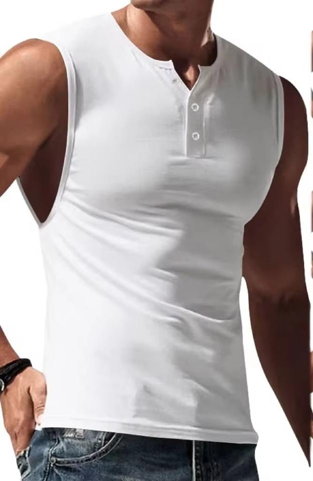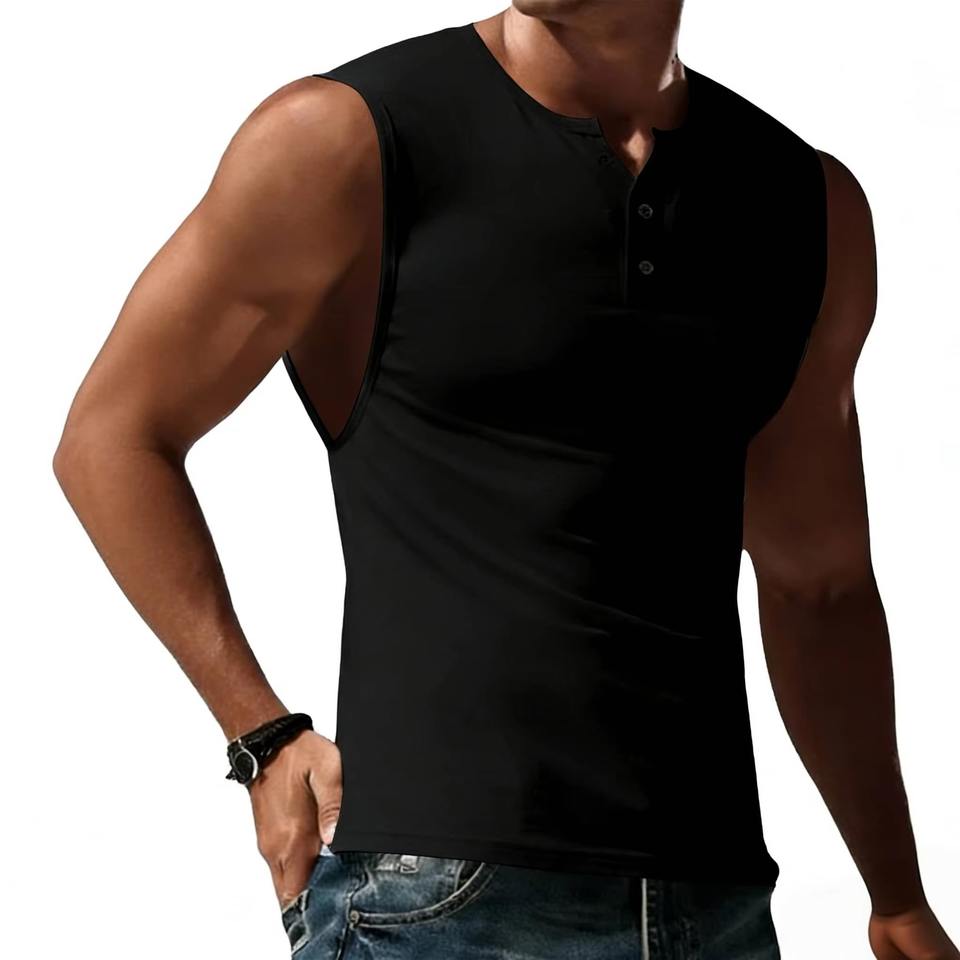 Premium Quality Comfortable Quick-Dry Breathable Henley Neck Tank Top for Men 100% Polyester