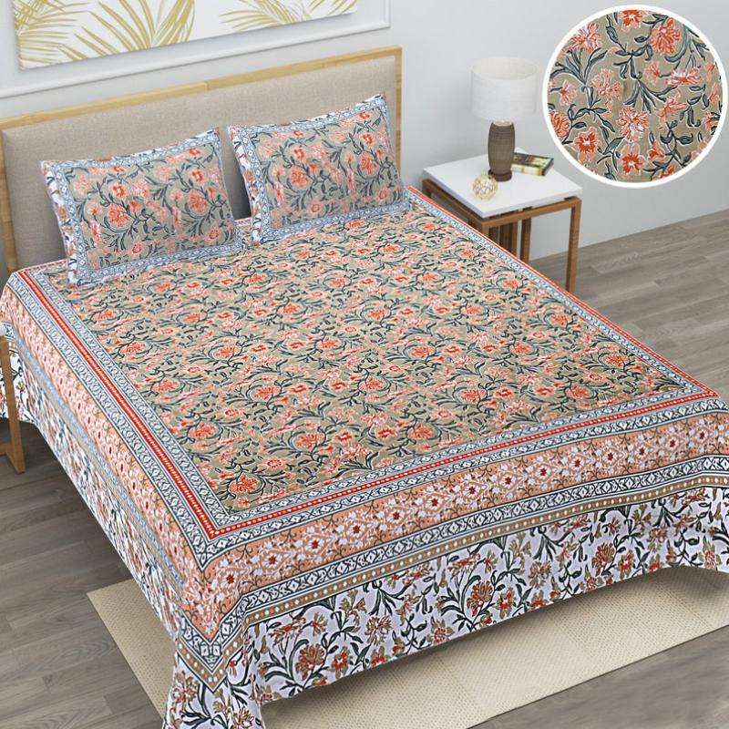 Premium Quality Cotton Bedsheet Set with Hand Block Printed Floral Design for Bedroom Use at Export Price From India