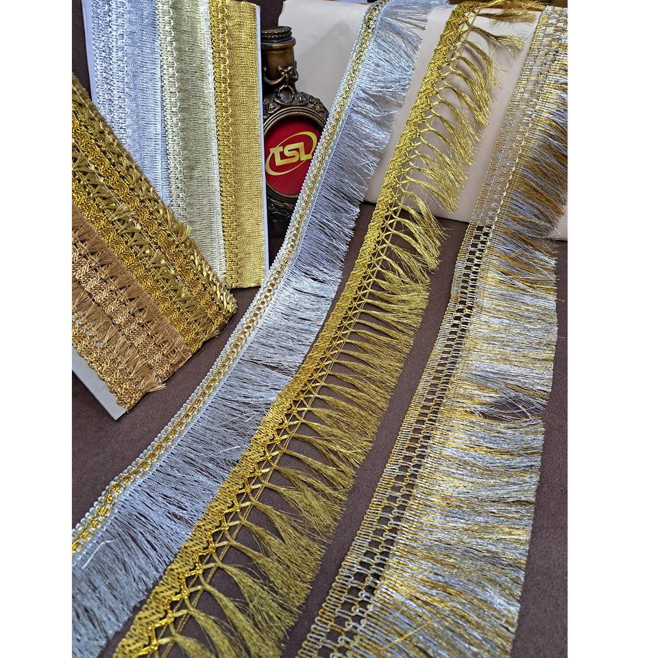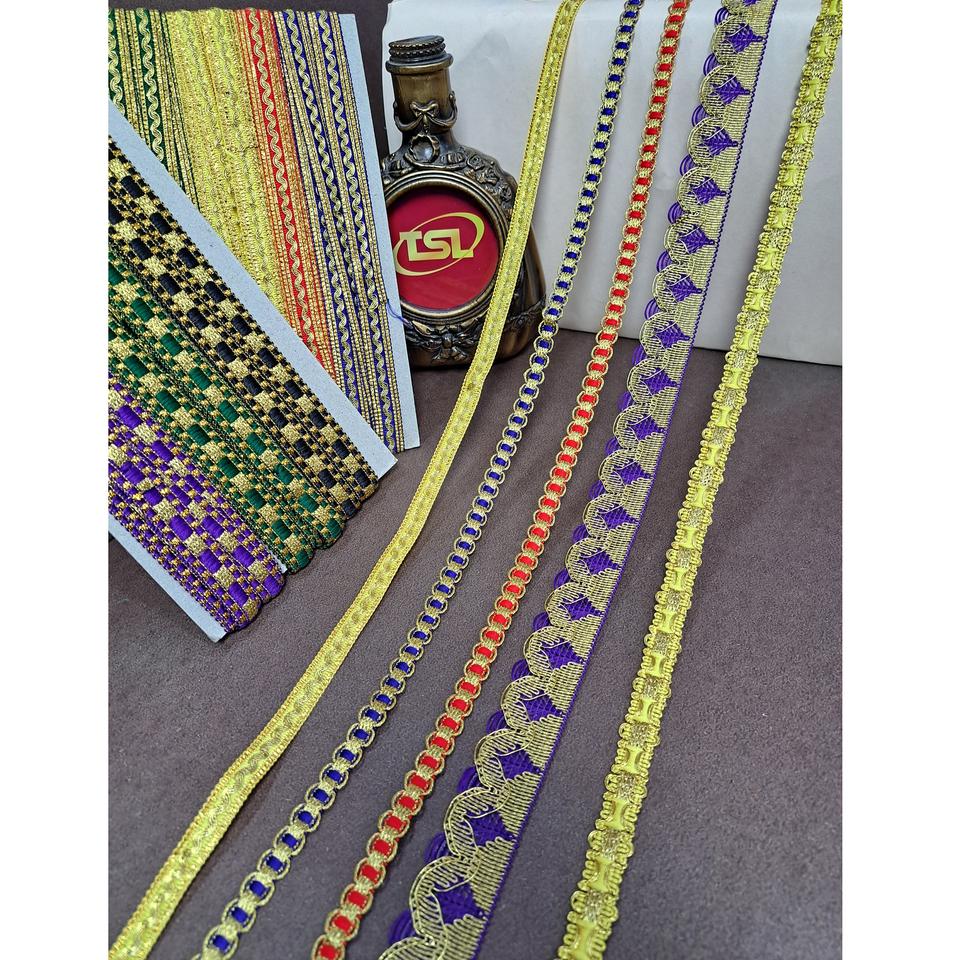 Premium Quality Cotton Metallic Polyester Lace Fabric Trimming Border Ribbon for Bridal Gown Saree Available for Low Price