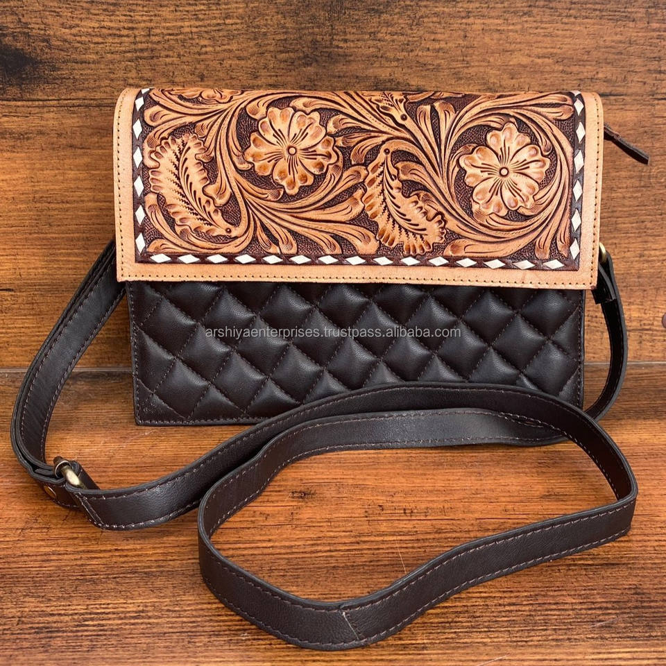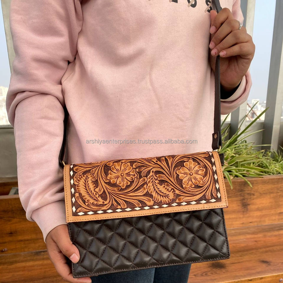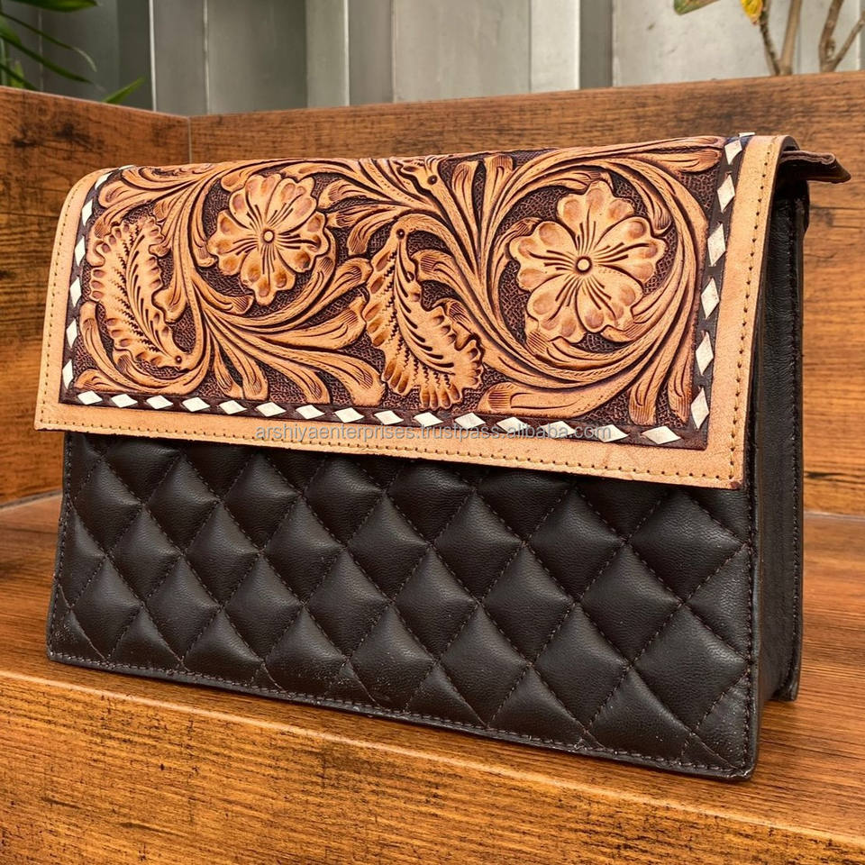 Premium Quality Custom Hand Tooled Leather Crossbody Bag Diamond Lattice Quilted Shoulder Bag Women's Leather Clutch Handbags