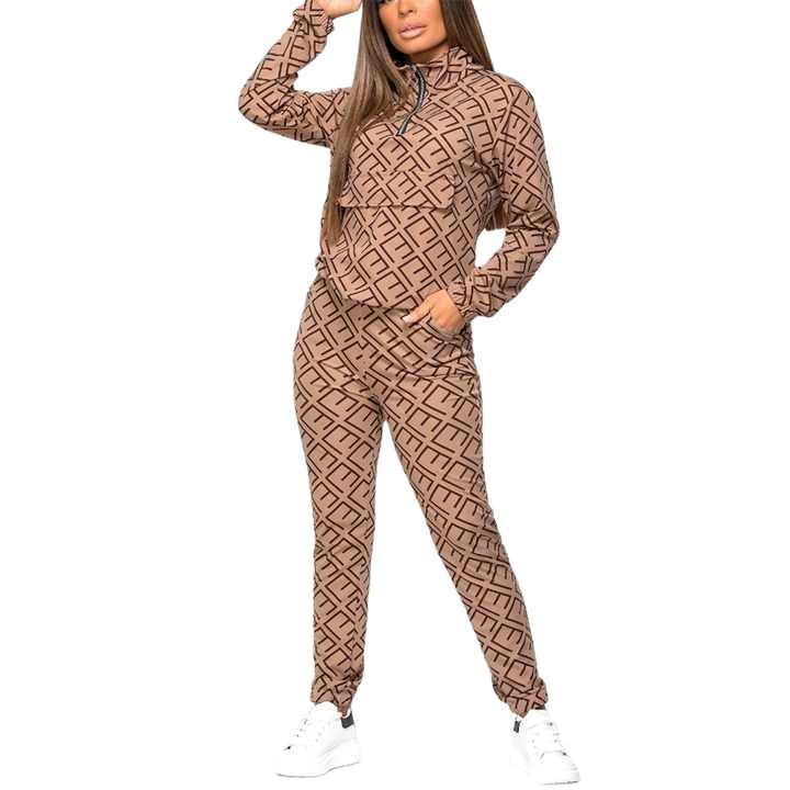 Premium Quality Custom Made Custom Design All Over Sublimation Polyester Women 2 Piece Set Half Zipper Women's Tracksuit 2027