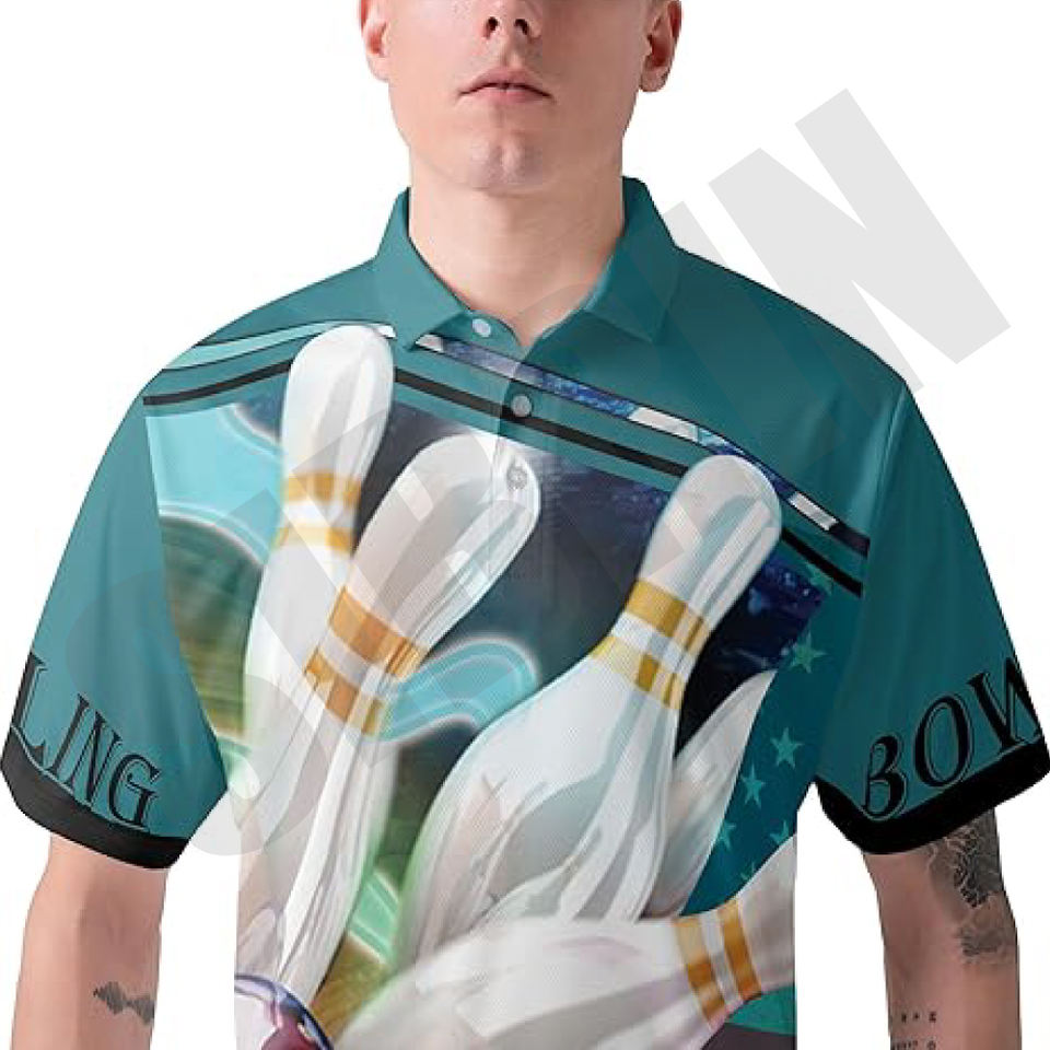 Premium Quality Custom Printed Bowling Ball T-Shirt Polo Jersey- Unisex Short Sleeve Collared Neck Personalized Sports Teamwear