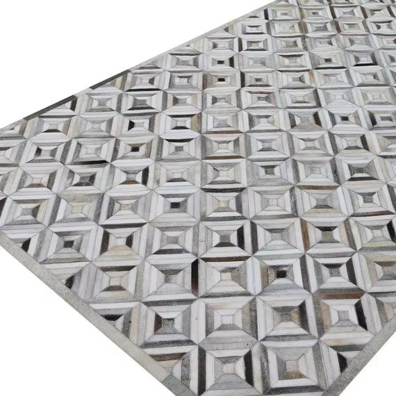 Premium Quality Custom Striped Patchwork Traditional Low Pile Cowhide Leather Rug Pet Friendly Non-Slip for Living Room Prayer