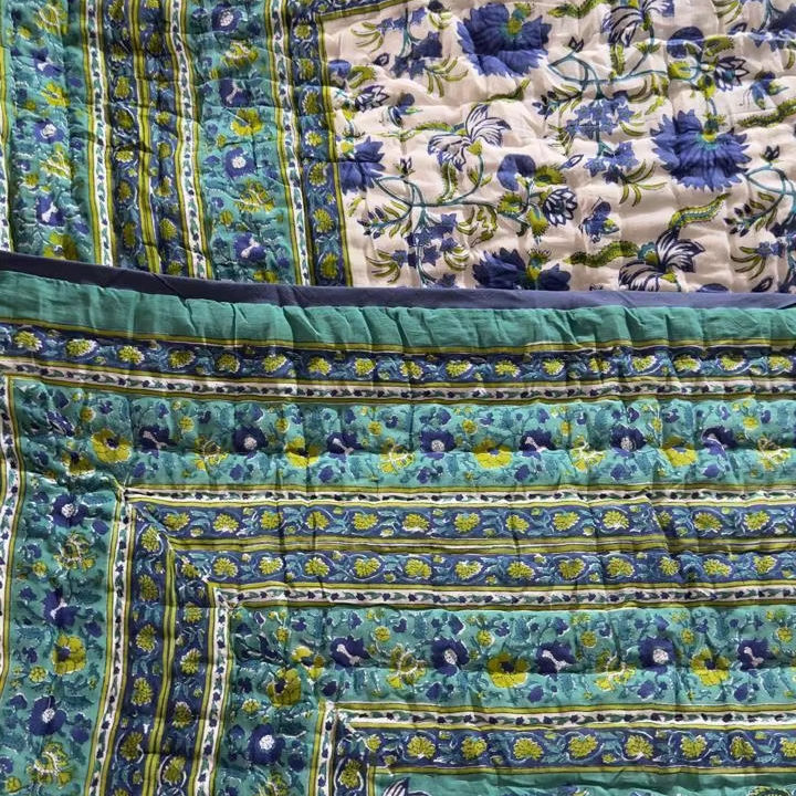 Premium Quality Design Print Patchwork Duvet Vintage Style Queen Size Cotton KanthaQuilt SoftReversible Winter Blanket for Hotel