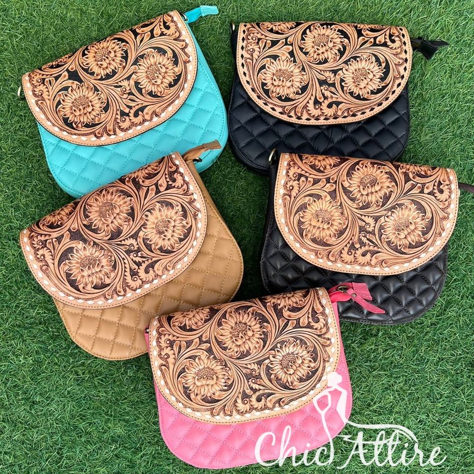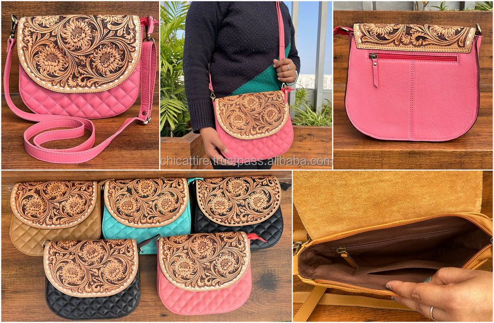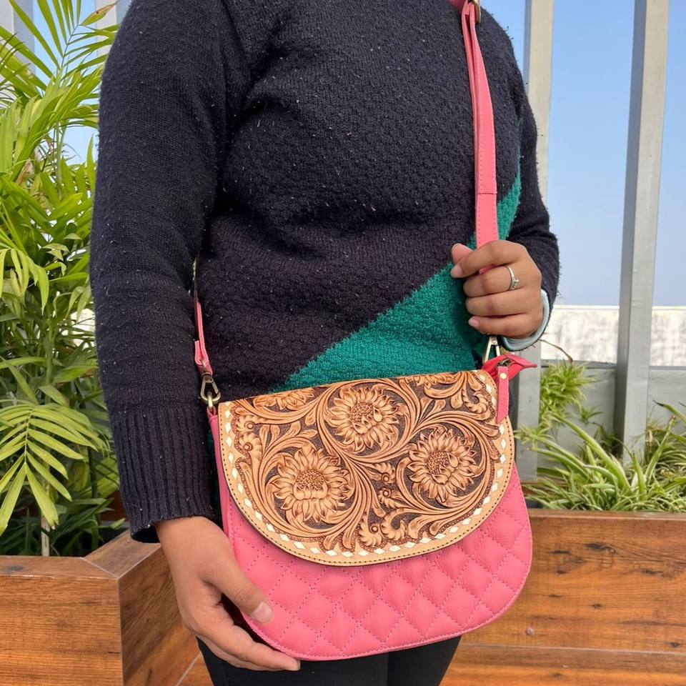Premium Quality Diamond Lattice Pattern Hand Tooled Cowhide Leather Sling Bag for Women's Quilted Design Crossbody Shoulder Bags