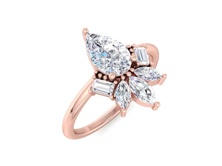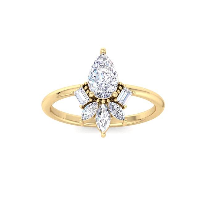 Most Selling Fine Jewelry 0.81 CT Pear Cut Lab Diamond Cluster Engagement Ring for Wedding and Party Wear