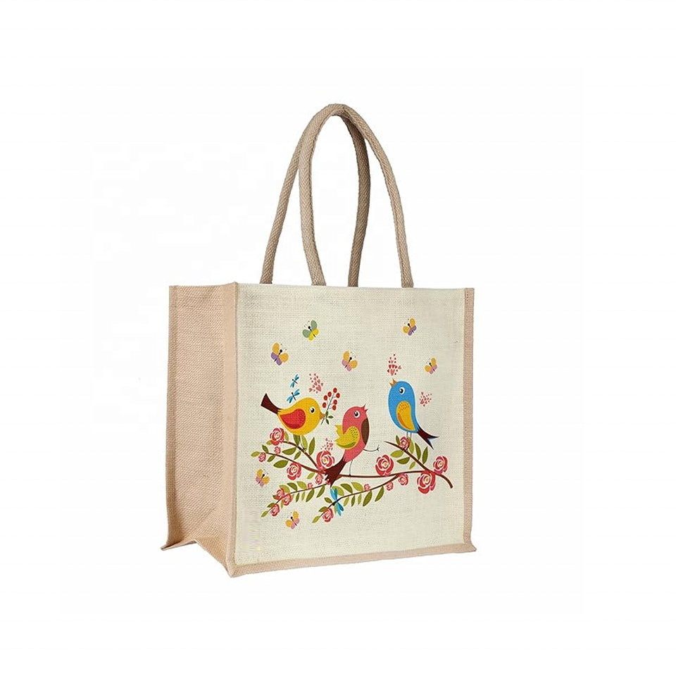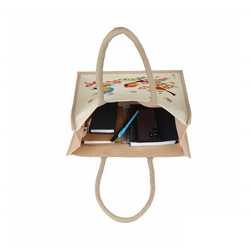 Premium Quality Eco-Friendly All-Over Printed Jute Shoulder Carry Bag webbing padded Handle with Zipper Handbags