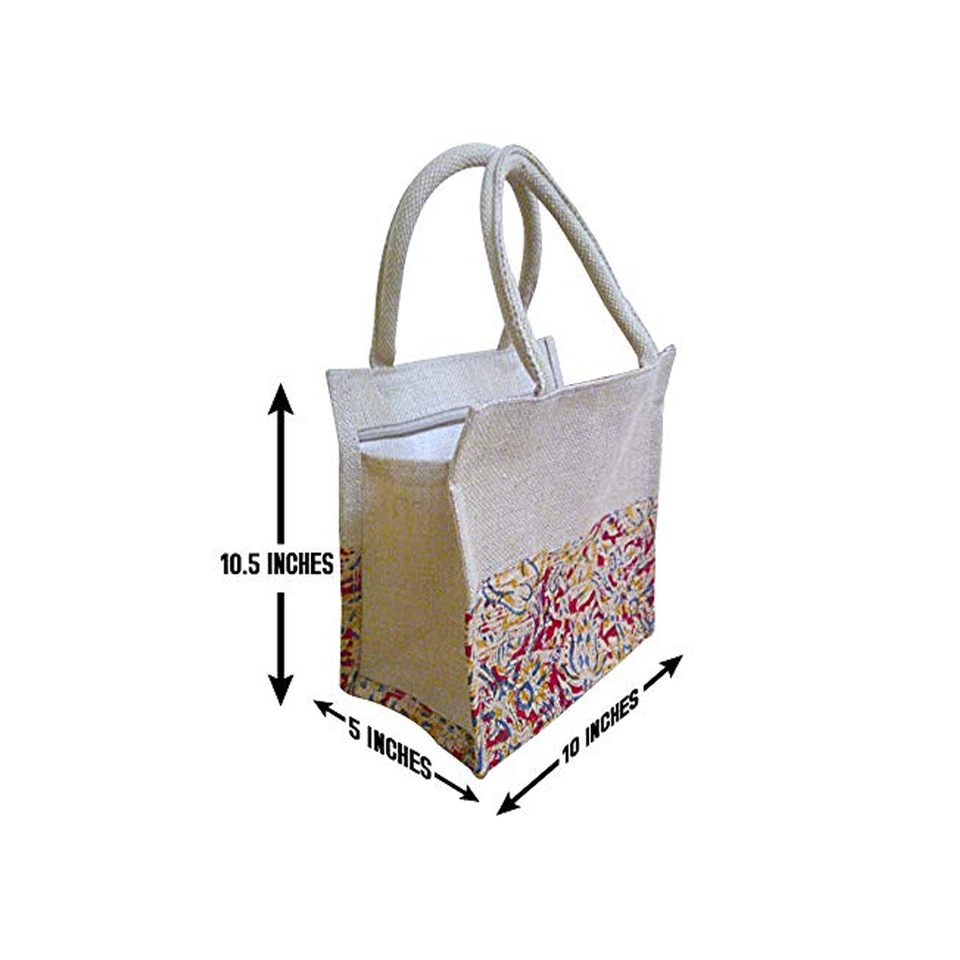 Premium Quality Eco-Friendly Lightweight Jute Shopping Tote Bag Geometric Pattern Bohemian Fashion Style Easy Carry Padded