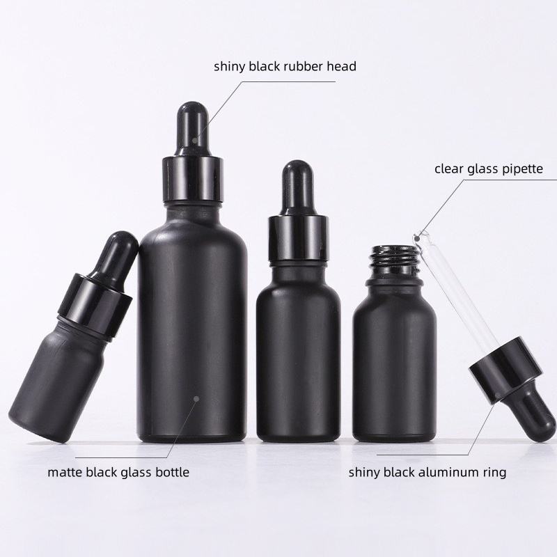Eco Friendly Round Matt Black Glass Dropper Bottle For Essential Oils