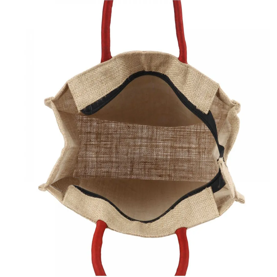 Premium Quality Elegant Embroidery Fancy Eco-Friendly Jute Shopping Tote Bag With Padded Handle Top Zipper Manufactured in India