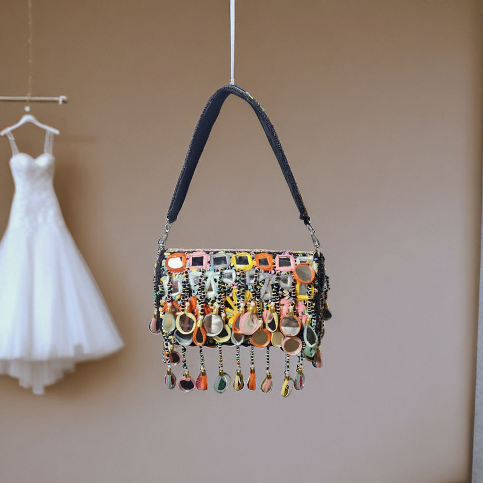 Premium Quality Embroidered Designer Tote with Hanging Beads & Sequins Party Bridal & Festival Handbag Parties Bridal Fashion
