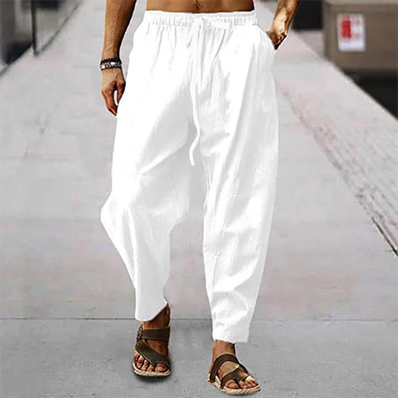 Premium Quality Fashionable Men's Vintage Drawstring Casual Cotton Linen Pants Formal Straight Pants Men High Quality Brand