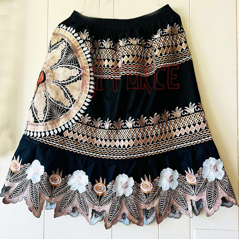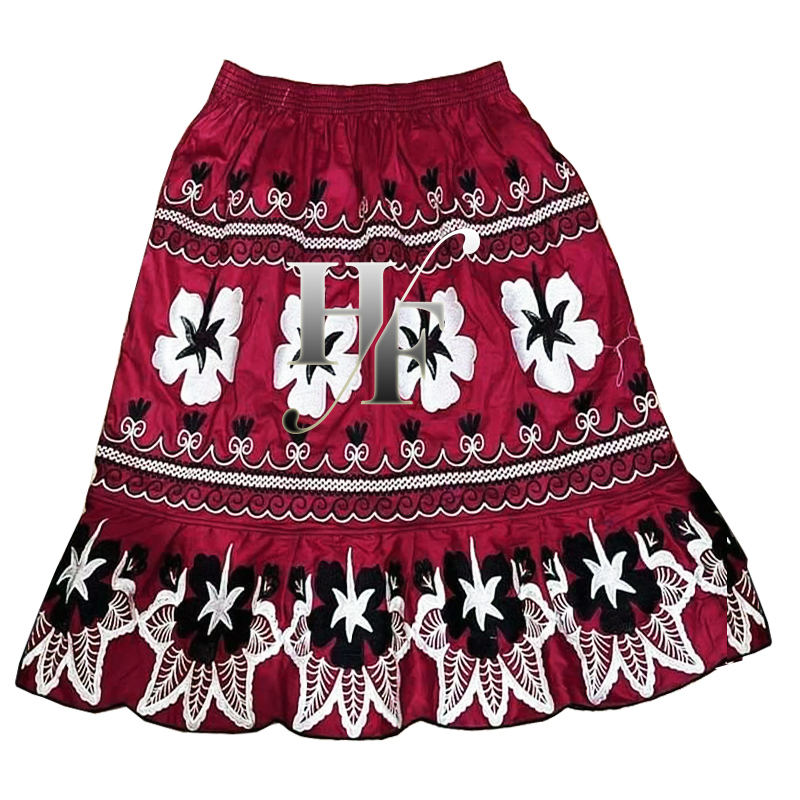Premium Quality Female Pohnpei Skirt Floral Pattern Embroidered Midi Elastic Waist Skirts Island Micronesian Casual Skirts
