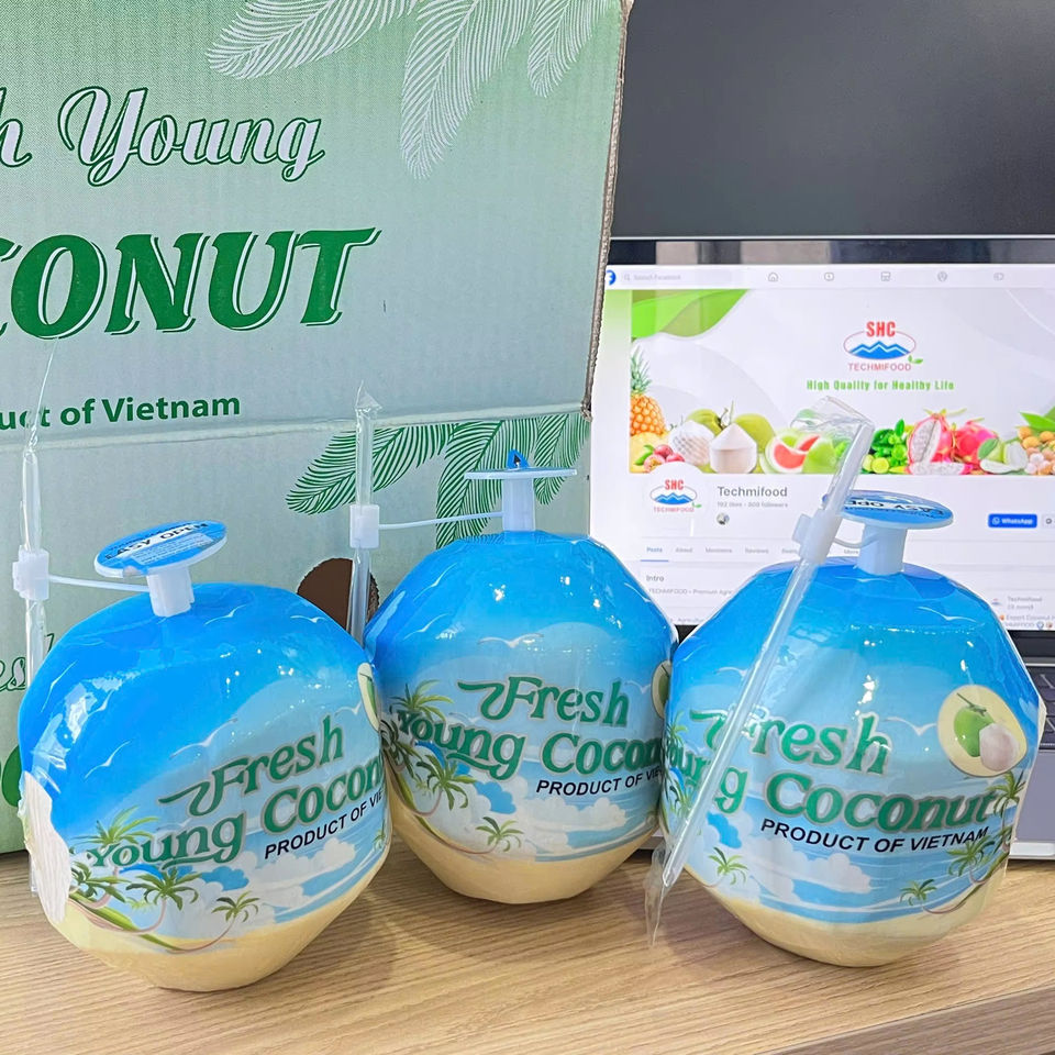 Premium Quality Fresh Young Coconut Whole Husk Sweet Diamond Shape Green Skin 70-90 Days Shelf Life Cold Storage Ben Tre