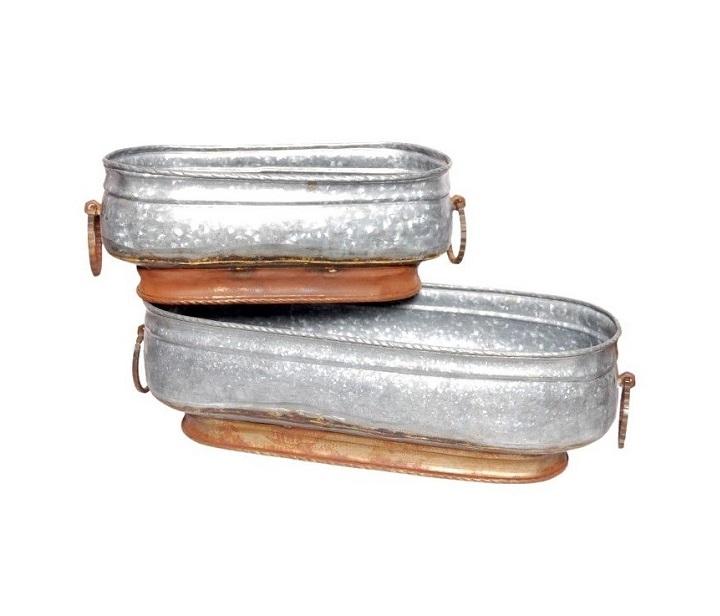 Premium Quality Galvanized Metal Planter Set of TWO Indoor Outdoor Decorative Design Flower Plants Pot