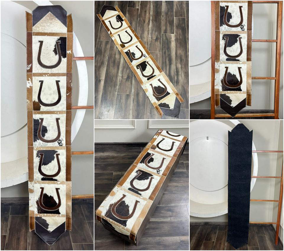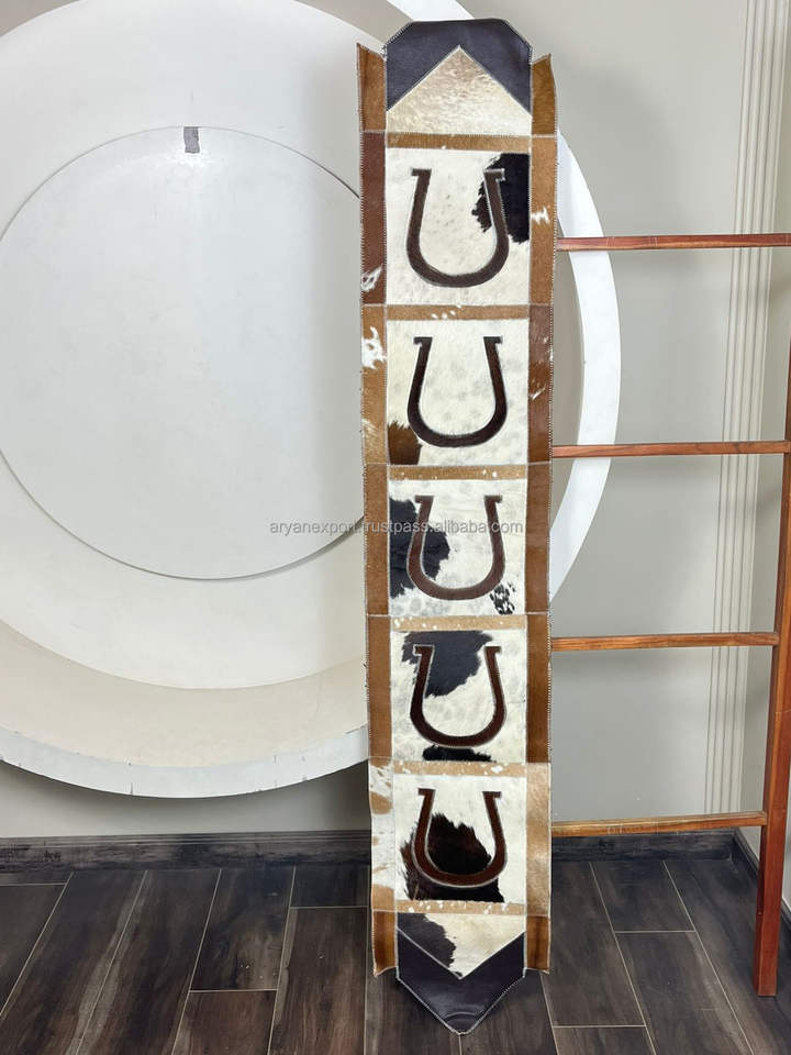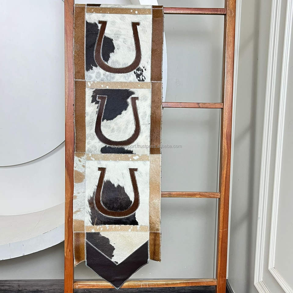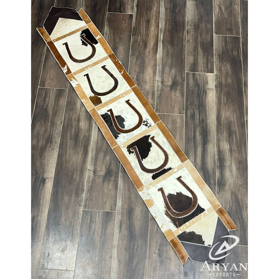 Premium Quality Genuine Cowhide Leather Patchwork Horseshoe Design Table Runner Rustic Home Decorative Dining Table Accessory