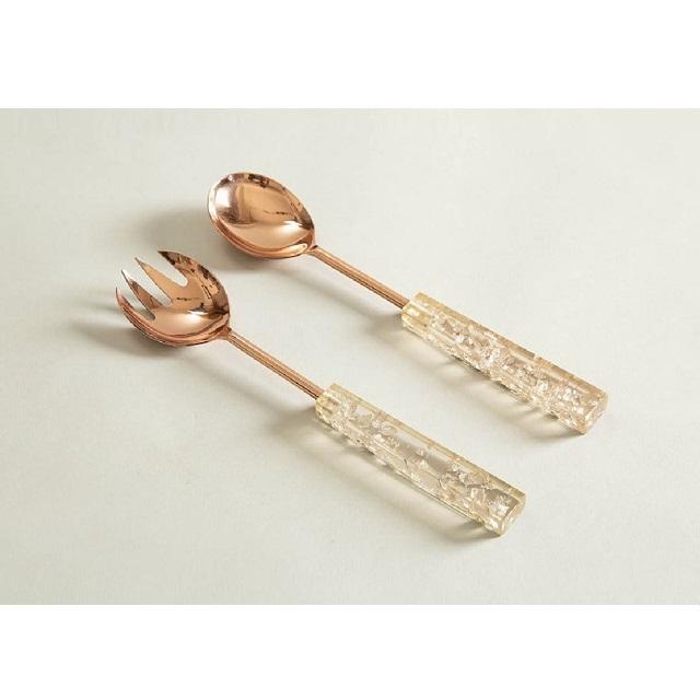 Premium Quality Gold Plated Stainless Steel Salad Server Set Rose Gold Tableware with Resin Handle Vintage Kitchen Tools