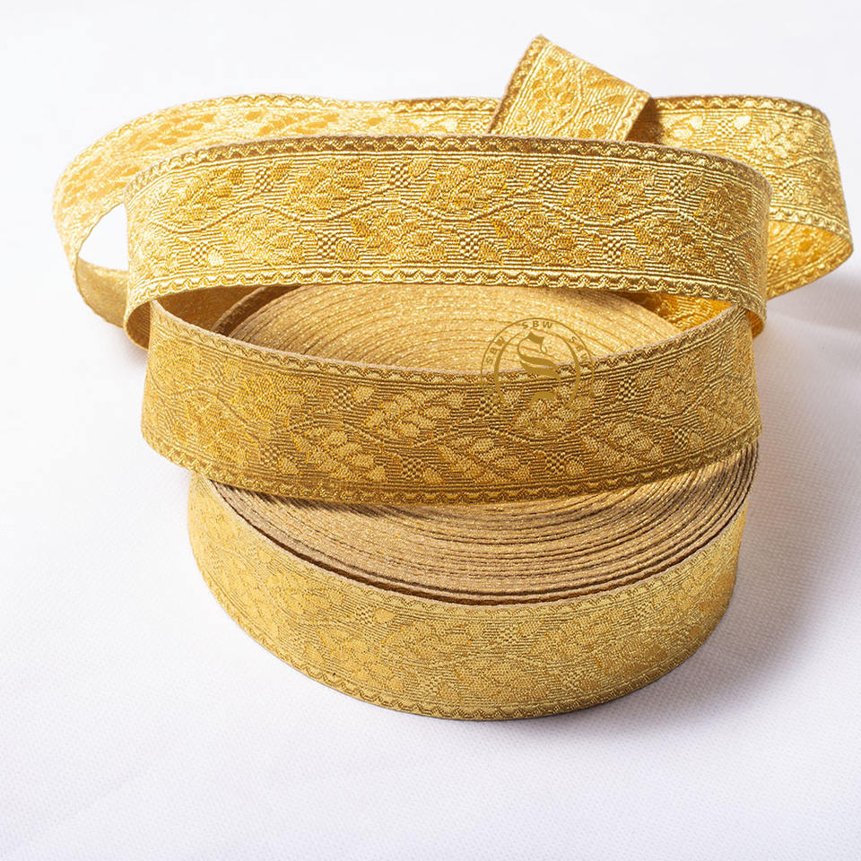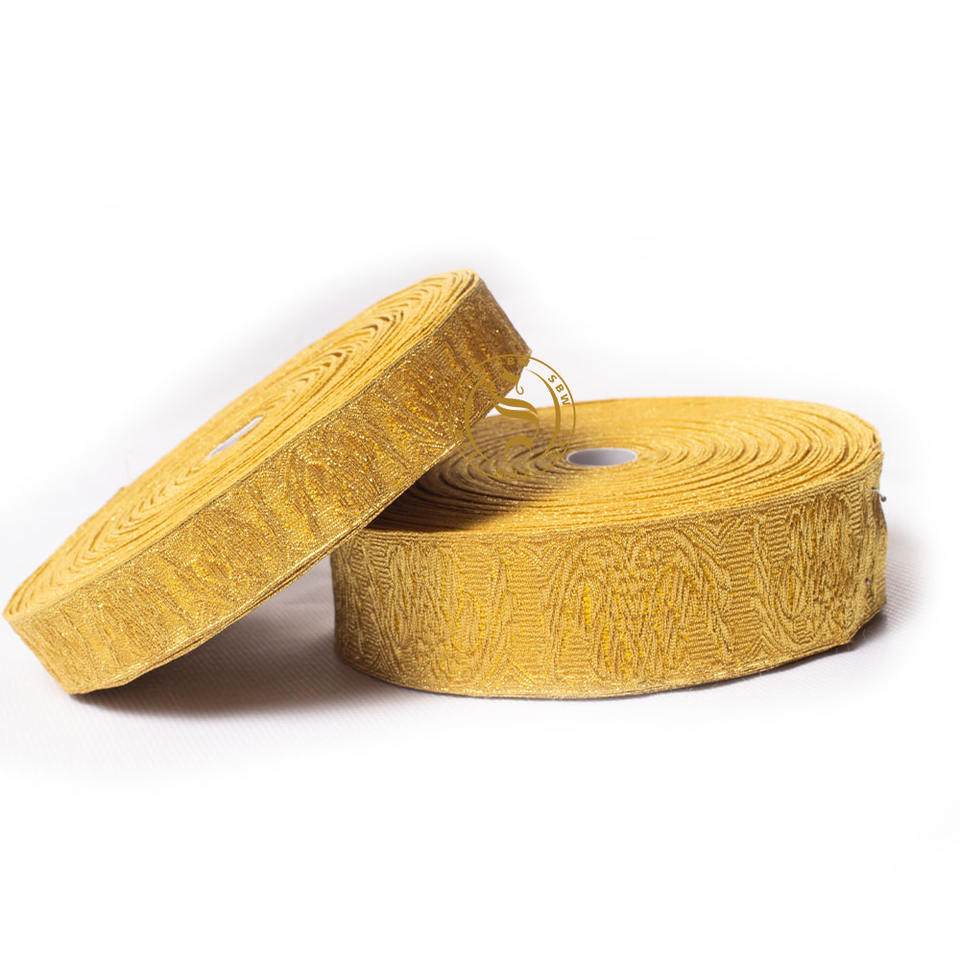 Premium Quality Gold Wire Vellum Lace Trim Ribbon Pattern Rank Stripes Metallic Braid Lace Fringes Customized Width Ceremonial