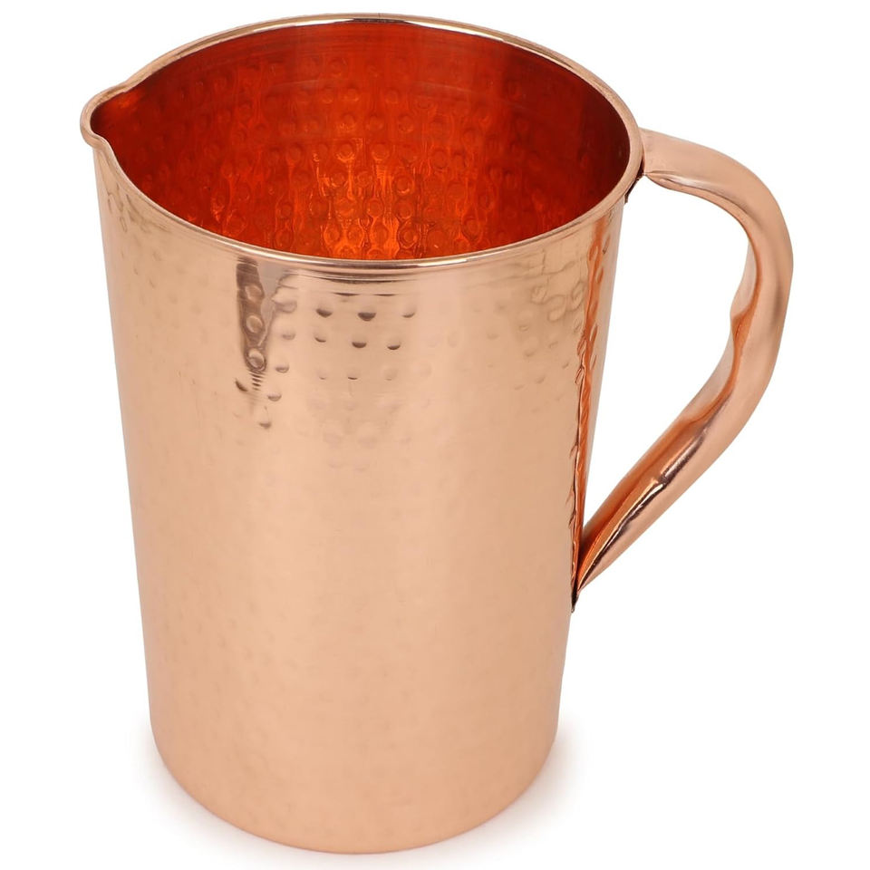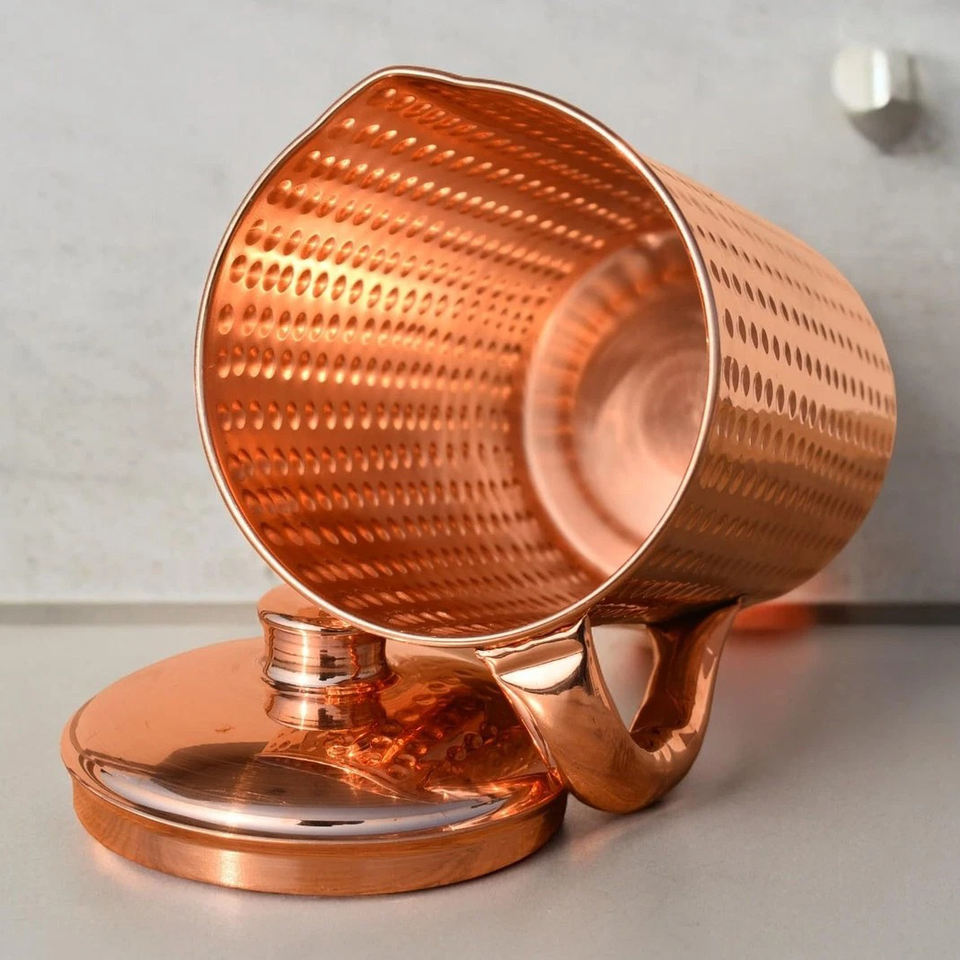 Premium Quality Hammered Design Custom Size Shiny Finished Pure Copper Drinking Container Jug Pitcher With Lid For Home Hotel