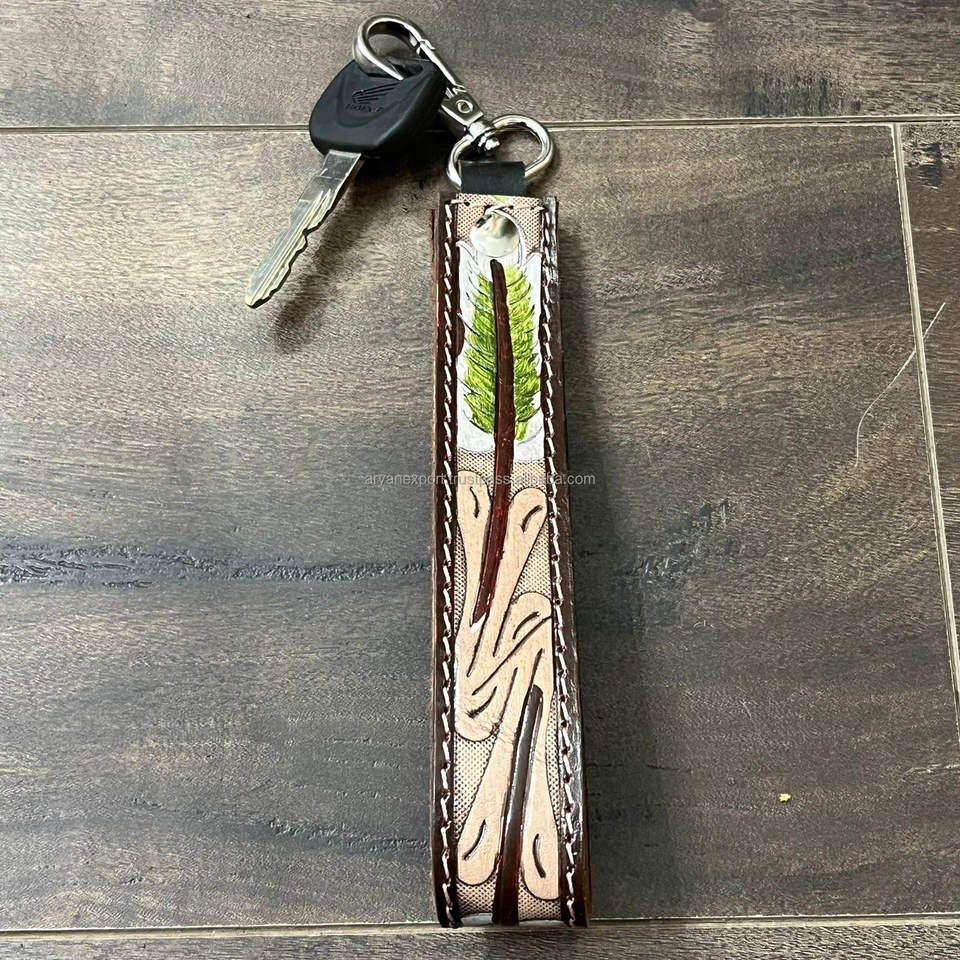 Hand Tooled Cowhide Leather Wristlet Keychain