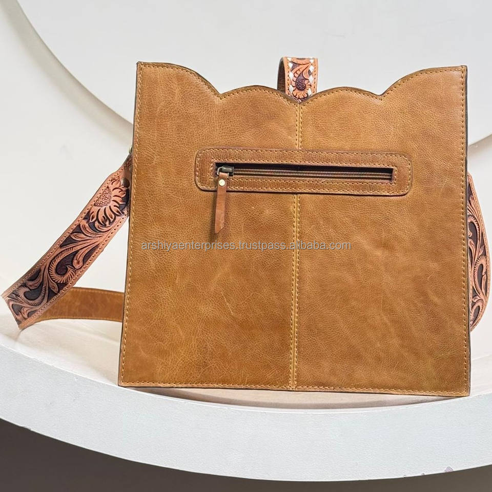 Premium Quality Hand Tooled Leather Crossbody Messenger Tote Bag for Women Durable Design Ideal for Work Travel Everyday Handbag